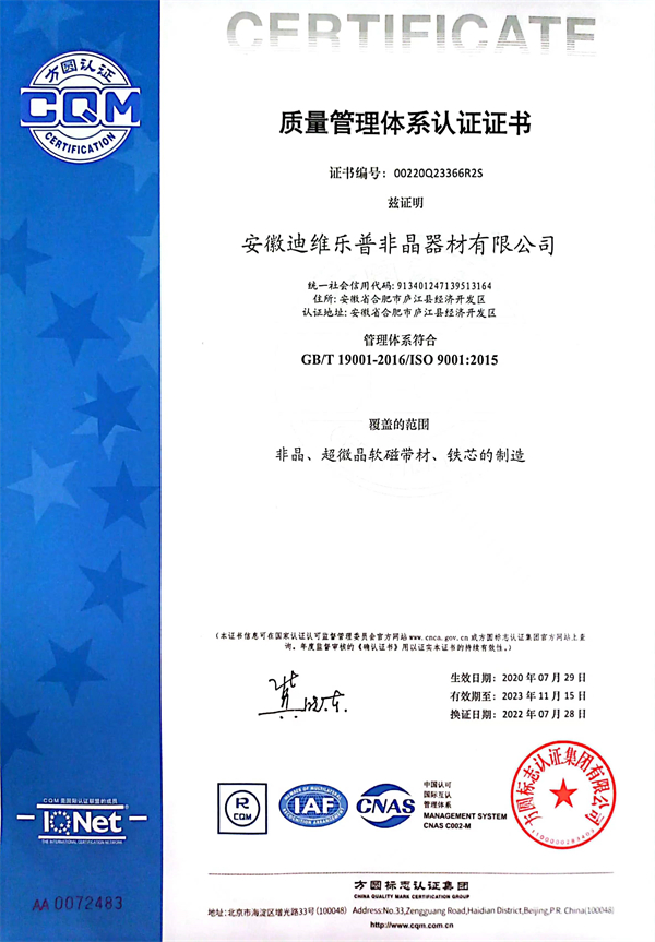 • 安徽迪維樂(lè)普非晶器材有限公司企業(yè)質(zhì)量標(biāo)準(zhǔn)